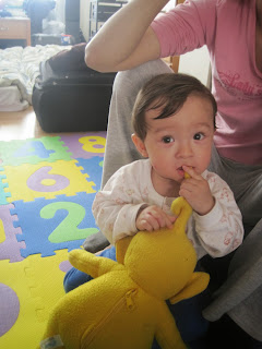 Il rit en faisant bravo. Quand il était ici, chaque fois qu'il mangeait bien je lui disais bravo petit dragon, en joignant le geste à la parole.